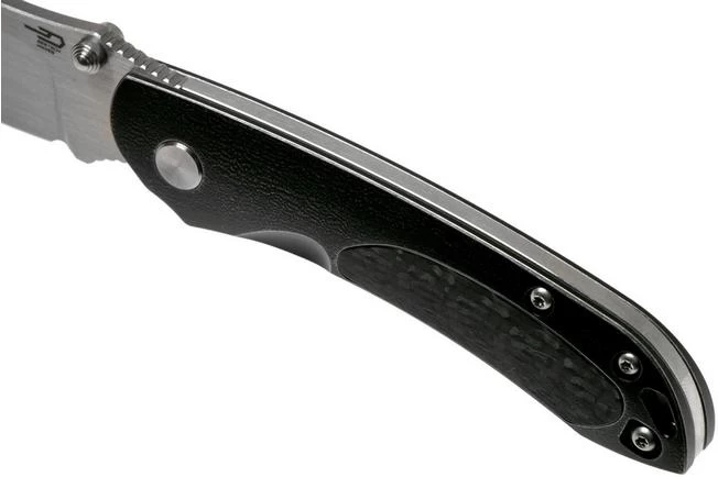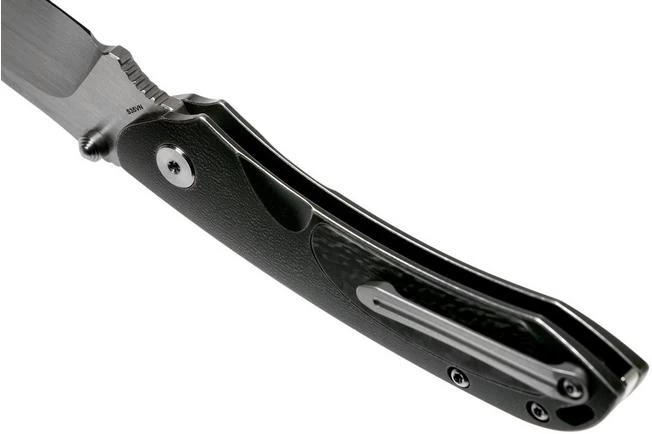 The Bestech Junzi BT1809 is a beautiful gentleman’s knife. You open the knife with one hand and when opened the blade is blocked by a slipjoint. As such you can legally carry the Junzi in many places in Europe. The titanium frame is enhanced with a nice carbon fibre inlay. The seamless fit of the inlays emphasizes how much attention was paid to this knife.