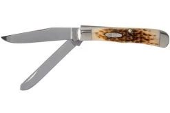 The Case Trapper is a traditional pocket knife with the classic Trapper shape. This pattern was first used by hunters and poachers. This specific version has two blades: one classic clippoint and a traditional spearpoint. Both blades have, when it comes to skinning game, their own purpose. When opened they are kept in place by a slipjoint.