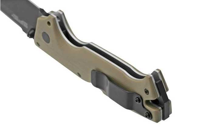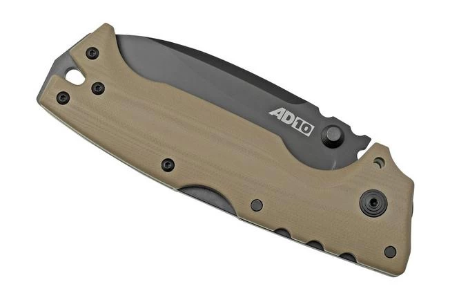 The Cold Steel AD-10 Dark Earth is a large, robust pocket knife, designed by Andrew Demko. This American designer is responsible for a large part of Cold Steel’s folding knife successes. This AD-10 is another model that will immediately bring a smile to your face. You will instantly feel what an amazing knife this is. Ready to be used.