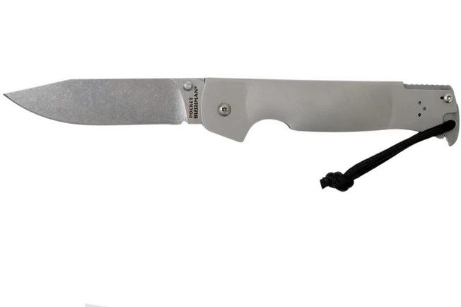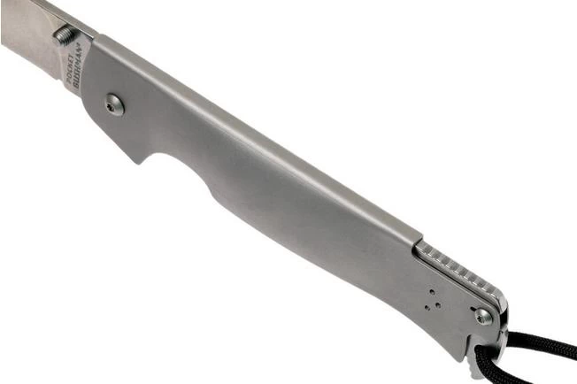 The Cold Steel Pocket Bushman is a relatively large folding knife that is really affordable due to its construction. The handle is made from one piece of steel without individual liners, scales or other parts.