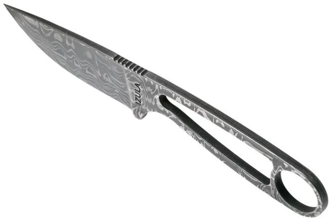 The ESEE Izula Damascus is a special limited edition version of the famous ESEE Izula. Instead of the standard carbon steel this version is made from damascus. Steel that is formed by two forging two types of steel on top of each other, then folding it. This process is repeated a couple of times until the steel becomes a nice veined whole.