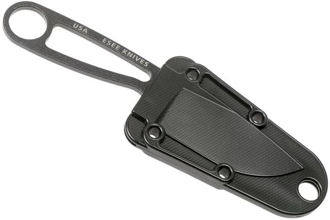 The blade of the ESEE Izula Black Signature Model is enhanced with an engraving of Jeff Randall and Mike Perrins autograph. These are the designers of the ESEE Izula. The knife is named after an aggressive ant from the Peruvian jungle. This is to emphasize that despite its size you shouldn’t underestimate this knife. The ESEE Izula is a versatile fixed knife. It will easily find a place in a bag or backpack or can be carried as a neck knife. Despite its size you can easily hold it. At the back you will find a large opening for your little finger to make sure you have an excellent grip. You could, of course, also make a paracord handle to increase the grip. And if you prefer a real handle ESEE also delivers those as an accessory. This, of course, will make the knife a little thicker.