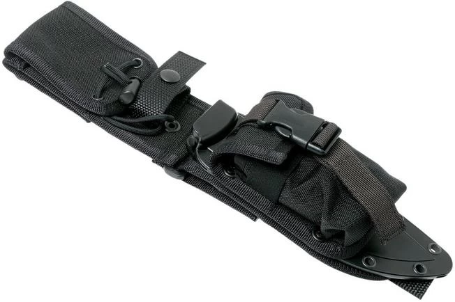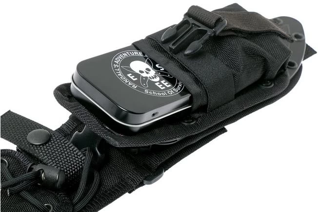 This practical ESEE 6 sheath with MOLLE-back and pouch set turns wearing an ESEE 6 knife into a wonderful experience. This sheath is made from very sturdy nylon which can withstand any type of weather, and can definitely handle its own.