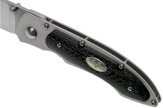 The Fällkniven P3G is a luxurious pocket knife, inspired by the work of Bob Loveless. It is striking how slim and lightweight the knife is. At the same time, it offers plenty of grip, even if you have large hands. The handle is made up of two thin steel liners with carbon fibre scales on both sides. These stunning scales give the knife an incredibly luxurious, modern look.