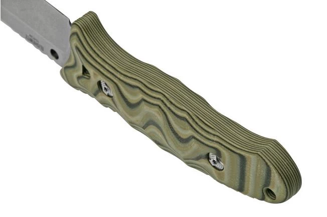 The Hogue EX-F02 is a bold fixed knife. The blade is made from 154CM steel. A stainless type of steel from the United States. This type of steel retains its sharpness well and is also easy to sharpen. The scales of the EX-F02 are secured with two torx screws and easy to remove and clean. Because the blade and the handle are enhanced with a paracord hole, you can easily wrap the knife in paracord.