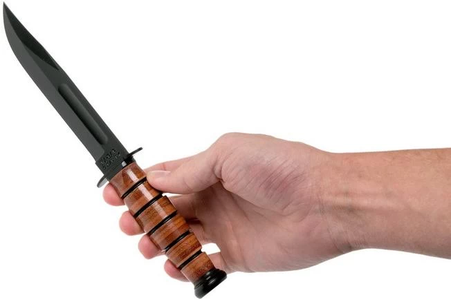 The KA-BAR Short USMC is a smaller version of a legendary fixed knife: the KA-BAR 1217. In 1942 this knife was used by the United States Marine Corps as a standard fighting knife for the marines. Ever since this knife is a part of the standard equipment of many soldiers. The knife is big and feels very strong. The handle is enhanced with a knife guard to make sure you will never end up on the razor-sharp edge during heavy-duty use. The blade is made from 1095-carbon steel. This steel, however, is not corrosion-resistant. Fortunately the blade is enhanced with a black coating to make sure maintenance is a lot easier. The handle is made from stacked leather rings. Comfortable for your hands, even when it is freezing out.