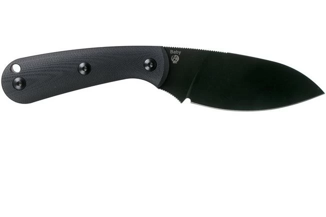 The Kizer Baby is a fixed knife, designed by Azo. With a blade length of 9.8 cm it isn’t a small knife, despite its name. For this knife, Kizer opted for 154CM steel. This is a good, stainless type of steel that retains its sharpness well. 154CM is also easy to sharpen. The handle is made from G10. A rock-solid and lightweight material.