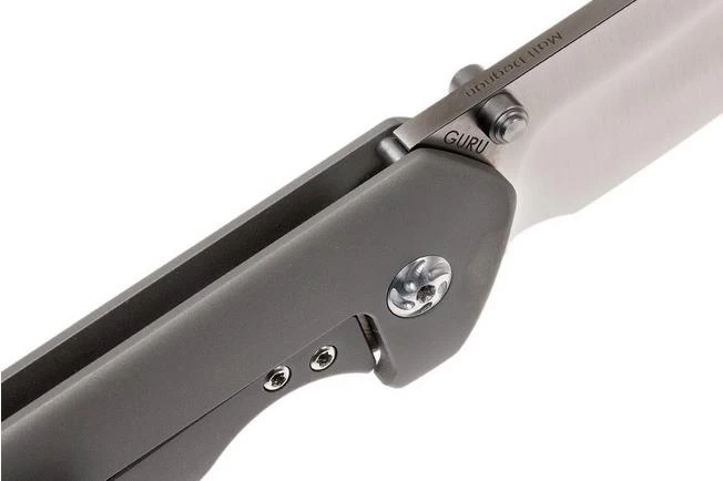 The Kizer Guru is a stunning gentleman’s knife, designed by Matt Degnan. It is a sleek, stylish pocket knife with a titanium frame and an S35VN steel blade. The sheepsfoot blade shape makes it an ideal pocket knife for many uses, from opening packaging to peeling an apple. The pivot has ceramic ball bearings, so it will keep working perfectly for many years to come. The solid frame lock has a steel element to prevent wear and tear in the long run. When you choose a Kizer Guru, you know that it will last for years.