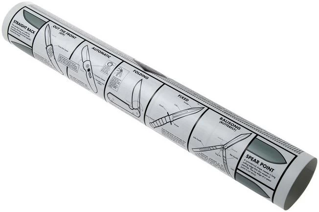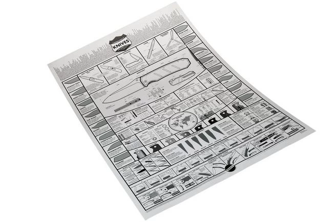 The KNAFS Knife Chart: A Modern Guide to Knives Poster is a cool poster that contains a lot of information about knives. About different models, materials, blade shapes, grinds, history: you name it and it’s there. A type of poster-sized database designed by Ben Petersen. He is known in the knife world on Youtube (What iiiissss up guys!!) and used his interest in knives to make this poster for everyone who wants to learn more about knives. Aside from the fact that it looks cool, it completes your collection.