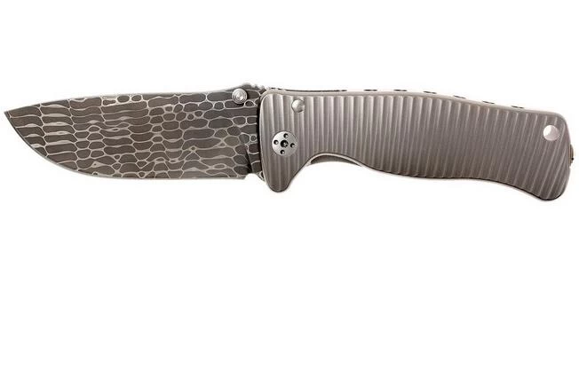 The LionSteel SR2 is a high-end gentleman’s knife. Its handle is milled out of one block of titanium. There are cut-outs in the spine of the handle to help reduce the weight. Both left-handed and right-handed people can easily open the wide blade one-handed by using the thumb studs. The top of the blade has ridges for additional grip. A sturdy frame lock locks the blade in place. The end of the frame lock is protected by a hardened steel element, which can be replaced if necessary.