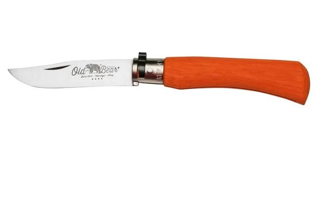The Old Bear Classical Orange M is a classic pocket knife from Italy. You easily open the blade with the nail nick. You do so with two hands. As such the knife can legally be carried almost everywhere in Europe. You lock the knife both when open and closed. It is the result of a Lupo-lock mechanism, a ring lock we have seen on similar knife brands but can be controlled with one hand.