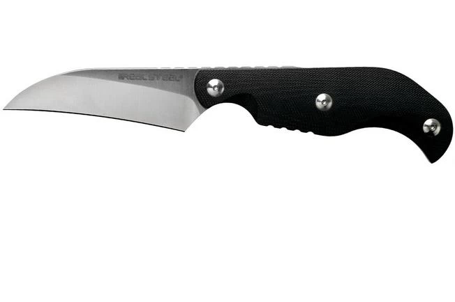 The Real Steel Banshee 3211 is a cool fixed knife, designed by Poltergeist Designs. When you look at the knife you immediately notice the hook-shaped blade. As such the knife is very efficient. The material you wish to cut is namely pulled ‘into’ the edge.