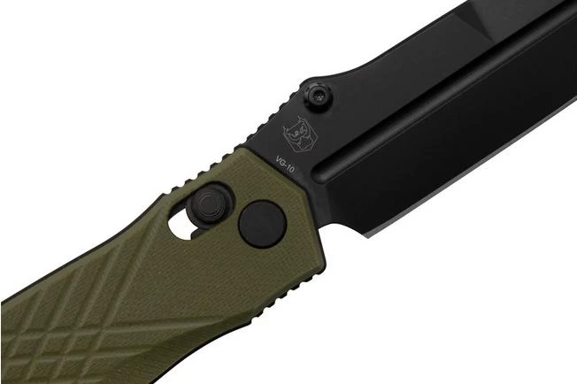 The Real Steel Muninn is family of the Huginn model. It stands out due to the symmetrical design and the dagger-shaped blade. The Muninn was designed by Ivan D. Braginets. He designed a knife for EDC use which could also be used as a tactical knife in the army. While the Huginn leans more towards EDC use, the Muninn is better suited for tactical purposes. You open the blade with the thumb studs or via the slide lock bolt. You immediately notice how easy and smoothly the blade opens and how well the blade is balanced. The dagger-shaped blade is sharpened on one side.
