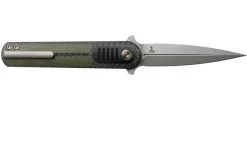We Knife Angst 2002A Carbon Fibre, Green G10 Pocket Knife, Justin Lundquist Design