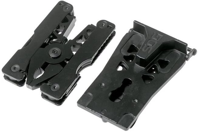 The SOG Sync II Traveller SN1012 is a practical multi-tool which can be carried in many different ways. It was namely designed to be used as a belt buckle. There is also a large clip you can use to attach it to the shoulder strap of a backpack. Clever and well thought-out.