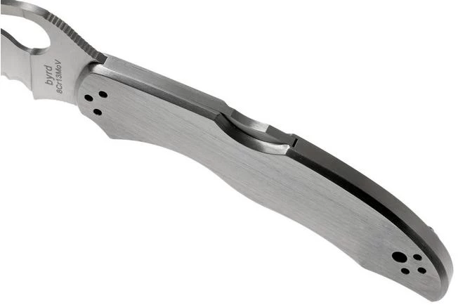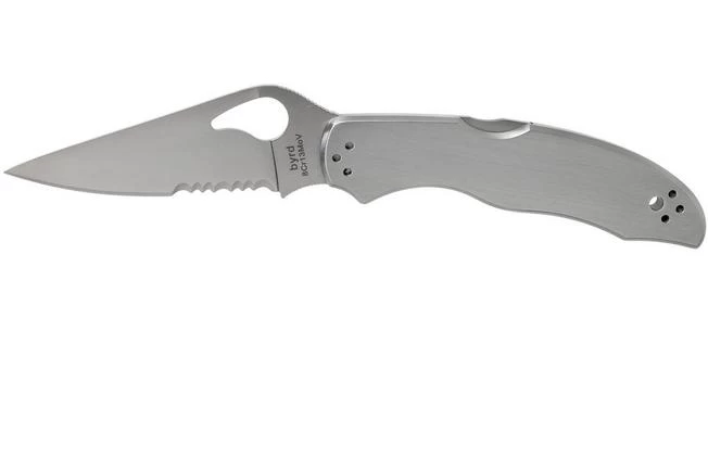 The Spyderco Byrd Harrier 2 Stainless is a practical pocket knife for daily use. The finger grooves in the handle give you a good grip on the knife. The 8cr13MoV steel blade can easily be opened with the comet-shaped hole. When opened the blade is locked by a decent and reliable back-lock. As an extra safety precaution this back-lock has been enhanced with a so-called Boye-dent; a crescent-shaped cut-out that makes sure the knife won’t close during heavy-duty use. The serrated edge is great when cutting through tougher materials such as rope and cardboard.
