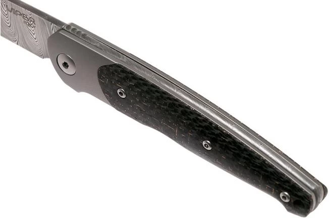 The Viper Key VA5978FCB Bolster Copper Carbon fibre pocket knife is a stylish gentleman’s knife, designed by Jesper Voxnaes. You clearly see his typical and unique design style in this remarkable gentleman’s knife. There is no clear line in sight. All forms, lines and details are attuned to each other, creating a harmonious whole. The slim design is attractive and turns it into a perfect gentleman’s knife for anyone who loves to wear a fancy outfit.
